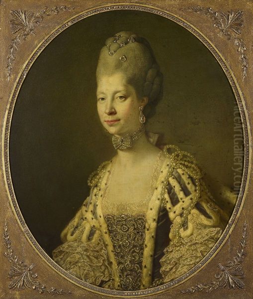 The captivating portrait Queen Charlotte (1744-1818) by Johann Zoffany radiates elegance and warmth, portraying the young queen in an intimate yet regal setting. Painted in 1771 during the height of Zoffany’s career as a court artist, the work exemplifies the Rococo-inspired grandeur of British portraiture, blending delicate brushwork with a soft, luminous palette. Charlotte, seated beside a lavishly adorned harpsichord, exudes quiet confidence, her sumptuous silk gown and pearls subtly reflecting her status while the cherubic charm of her children adds a touch of domestic serenity. The composition skillfully balances formality and familial affection—a hallmark of Zoffany’s ability to humanize royalty. Historically significant, this piece offers a glimpse into the evolving portrayal of monarchy during the Georgian era, where personal refinement began to complement traditional displays of power. Today, it remains a celebrated example of 18th-century portraiture, bridging the transition from Rococo to the emerging Neoclassical style.