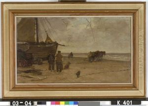 Figures With A Horse-drawn Cart On The Beach