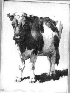 Kuhweide Mit Stier, Kuh Und Drei Kalbern