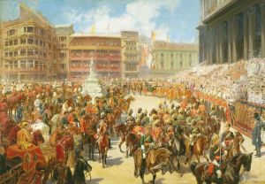 Queen Victoria arriving at St Paul's Cathedral on the occasion of the Diamond Jubilee Thanksgiving Service, 22 June 1897