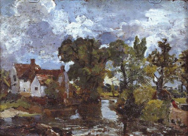 In John Constable’s Night Scene with Bridge, the viewer is enveloped in a hauntingly serene nocturnal landscape. Painted circa 1824, this atmospheric work captures the tranquility of twilight through soft, diffused light reflecting on water and the delicate silhouette of a bridge arching over a quiet river. Unlike Constable’s famed daytime pastoral scenes, this rare nocturnal study reveals his mastery of mood and atmosphere, employing subdued tones and fluid brushwork characteristic of Romanticism. Though less celebrated than his Hay Wain, this piece exemplifies Constable’s innovative approach to light and shadows, bridging the gap between traditional landscape painting and the emotive spontaneity later embraced by the Impressionists. Its intimate scale and introspective quality make it a quiet gem in Constable’s oeuvre, offering a glimpse into his experimental side beyond his iconic rural vistas.