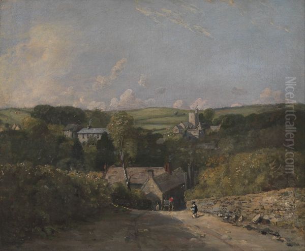 John Constable's Osmington Village (circa 1816–17) captures the idyllic charm of rural England with poetic realism. Painted during his artistic maturity, the work depicts a serene Dorset village nestled amid lush greenery, where soft sunlight filters through towering trees and gently illuminates thatched cottages. Characteristic of Constable’s signature style, the scene balances meticulous naturalistic detail with an emotive, almost nostalgic atmosphere. Broad, textured brushstrokes convey the vitality of the landscape, while harmonious earthy tones—soft greens, warm browns, and muted blues—reflect his profound connection to the English countryside. This piece exemplifies Constable’s role as a pioneer of plein air painting, bridging the traditions of Romanticism and the later Barbizon School. Today, it remains celebrated for its timeless pastoral beauty and its influence on landscape painting.