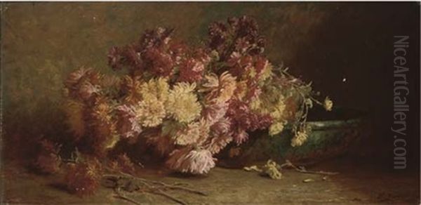 John Fitz Marshall’s Chrysanthemums is a vibrant celebration of nature’s intricate beauty, capturing the lush fullness and delicate intricacies of chrysanthemum blooms with a masterful blend of realism and impressionistic flair. Painted with rich, layered brushstrokes, the artwork exudes warmth and vitality—soft petals seem to glow against deeper backgrounds, while the play of light and shadow adds a sense of depth and movement. Emerging during the late 19th to early 20th century, Marshall’s work reflects the enduring influence of British floral painting traditions, echoing the detailed elegance of artists like Fantin-Latour while infusing a more tactile, expressive quality. Though less widely documented than his contemporaries, Marshall’s floral studies occupy a niche in botanical art history, prized for their emotive resonance and technical finesse. Chrysanthemums, with its harmonious balance of precision and exuberance, exemplifies this duality—making it a timeless piece that bridges decorative charm and fine art.