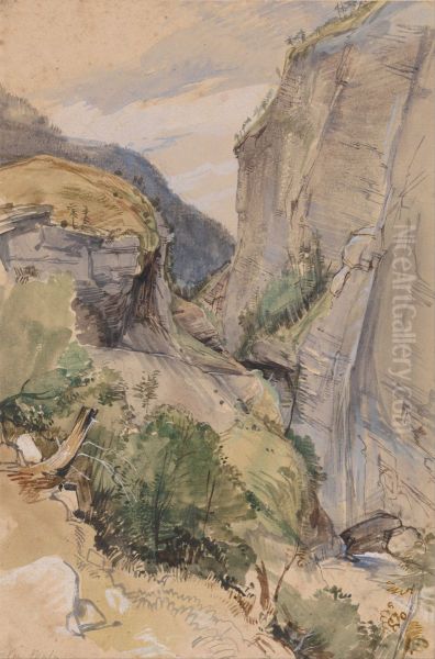 Step into the haunting grandeur of The Via Mala by John Frederick Lewis (1805–1876), a striking example of 19th-century Romantic Orientalism. Painted in 1853, this dramatic landscape captures Switzerland’s notorious Via Mala gorge—a sheer, vertigo-inducing chasm where jagged cliffs loom over a rushing river. Lewis, though better known for his detailed Eastern scenes, masterfully renders nature’s sublime power here, blending precise topography with Romantic emotion. The play of light on damp rock and the precarious wooden bridges whisper tales of peril and awe, reflecting the era’s fascination with untamed landscapes. Though less celebrated than his Oriental works, The Via Mala remains pivotal in understanding Lewis’s versatility and the broader European Romantic movement’s obsession with nature’s dual beauty and terror.
