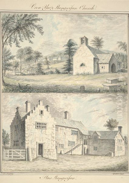 The painting Fron Ynys & Llangwyfan Church ; Plas Llangwyfan by John Ingleby is a captivating pastoral landscape that beautifully captures the serene charm of rural Wales. Ingleby, a 19th-century British artist, was known for his delicate watercolors and keen attention to natural detail, and this work exemplifies his refined style. The composition likely depicts Llangwyfan, a quaint village with its historic church, set against rolling hills and muted skies, evoking a sense of timeless tranquility. Ingleby’s soft brushwork and subtle tonal gradations reflect the influence of the Romantic movement, emphasizing emotion and the sublime in nature. While not as widely recognized as contemporaries like Turner, Ingleby’s works hold a quiet significance in British landscape art for their technical precision and lyrical sensitivity. This particular piece offers a glimpse into 19th-century Wales, blending topographical accuracy with poetic atmosphere.
