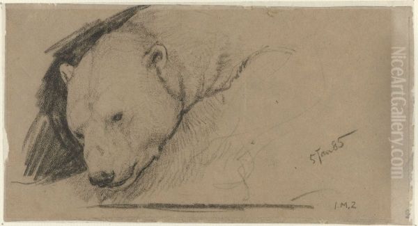 The painting Kop van een ijsbeer (Head of a Polar Bear) by John Macallan Swan (1847–1910) is a striking depiction of wildlife, rendered with both anatomical precision and emotional depth. A Scottish painter and sculptor associated with the realist and animalier tradition, Swan was celebrated for his ability to capture animal subjects with vitality and sensitivity. This work exemplifies his mastery of texture—the bear’s fur appears tactile, its piercing gaze almost lifelike—blending naturalism with subtle romanticism. Created during the late 19th to early 20th century, a period when animal art gained prominence, Swan’s polar bear stands out for its intimate focus, diverging from grandiose wilderness scenes. His work bridges scientific observation and artistic expression, aligning with contemporaries like Sir Edwin Landseer while pioneering a more restrained, modern aesthetic. Today, Kop van een ijsbeer is admired for its technical brilliance and evocative quietude, reflecting Swan’s unique position in British art as a bridge between Victorian detail and emerging modernist simplicity.
