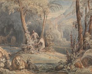 A Classical Hero Rescuing A Mother And Child From A Wolf