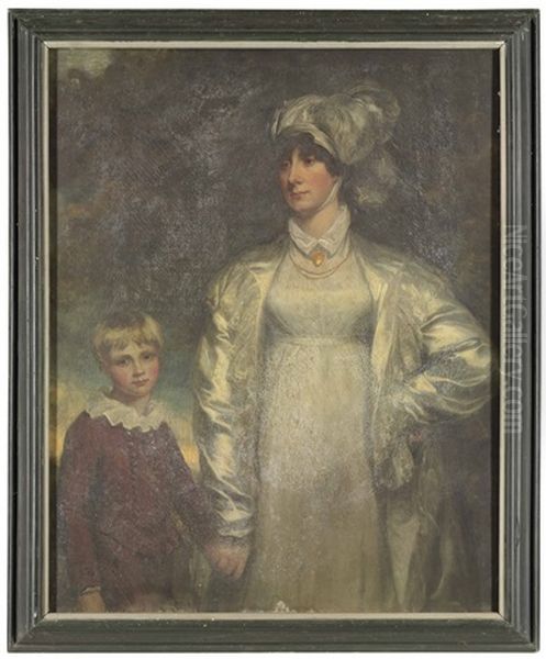 Portrait Of A Lady And Her Son, The Former Three-quarter Length, In A White Dress