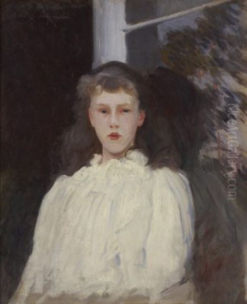 Polly Barnard (aka Girl in White Muslin), painted by John Singer Sargent in 1888, is a striking example of the artist’s virtuosity in portraiture. The painting captures a young woman dressed in a flowing white muslin dress, standing against a dark, indistinct background that heightens the luminosity of her figure. Sargent's loose, expressive brushwork and keen attention to fabric textures imbue the scene with a sense of movement and vitality, while the subtle interplay of light and shadow lends the subject an almost ethereal presence. This work reflects Sargent’s mastery of the Impressionist-influenced realism that defined his early career, showcasing his ability to blend formal elegance with spontaneous energy. Though less famous than Madame X or Carnation, Lily, Lily, Rose, this portrait is a testament to Sargent’s fascination with capturing the transient beauty of youth and fabric—an enduring theme in late 19th-century portraiture.