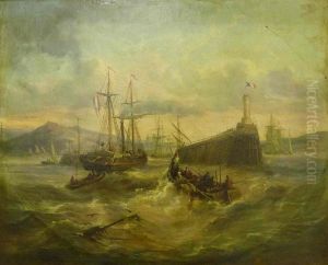 John Wilson Carmichael’s A Mediterranean Coastal Scene is a captivating 19th-century maritime painting that transports viewers to sun-drenched shores with its luminous palette and dynamic composition. This work exemplifies Carmichael’s mastery of coastal landscapes, blending Romanticism’s emotional intensity with precise maritime detail—a hallmark of his career as a renowned British marine painter. Set against the Mediterranean’s cerulean waters, the scene bustles with fisherfolk and sailing vessels, rendered in loose yet confident brushwork that captures light dancing on waves. As a key figure in Victorian marine art, Carmichael’s works like this bridged topographical accuracy with poetic atmosphere, offering a nostalgic glimpse into pre-industrial seafaring life. Today, it represents both historical maritime culture and the enduring appeal of coastal Romanticism.
