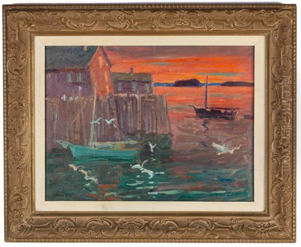 Harbor Scene At Sunset