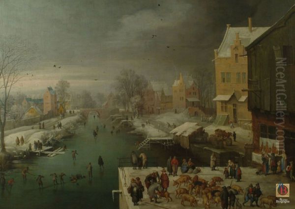 Bring the timeless beauty of Joos de Momper the Younger's Winter landscape with skaters and a pig market into your home with a handmade oil painting reproduction. Carefully recreated on canvas by skilled artists using traditional techniques, this piece captures the delicate brushwork, subtle light, and vibrant color of the original masterpiece. With museum-level quality and rich texture, it brings elegance and artistic depth to any space. Enjoy free shipping and make this masterpiece a part of your personal collection.