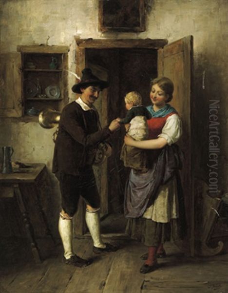 Josef Bueche's Gluckliche Familie (Happy Family) is a charming and heartwarming painting that radiates domestic harmony and quiet joy. Created in the late 19th or early 20th century, the artwork belongs to the broader genre of genre painting, which depicts scenes of everyday life with sentimental or moralizing undertones. Bueche's style reflects the Biedermeier tradition, emphasizing intimate interiors, meticulous detail, and subdued yet warm color palettes. The painting portrays a family gathering—parents and children in cozy interaction—highlighting the era's idealized domesticity. While not as widely recognized as works by Biedermeier masters like Ferdinand Georg Waldmüller, Bueche's piece offers a tender glimpse into bourgeois life of the period, contributing to art history's documentation of 19th-century European social values and aesthetics. Its unpretentious, relatable subject matter ensures its enduring appeal.