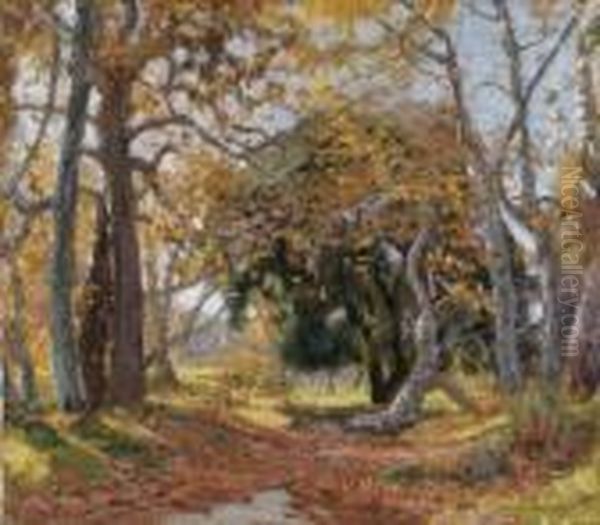 In Joseph A. Kleitsch’s Mission Canyon, the golden Californian sunlight bathes a serene canyon landscape, evoking a timeless tranquility. Painted around the early 1920s during Kleitsch’s prolific California period, this work exemplifies American Impressionism, characterized by loose brushwork and luminous color harmonies. Kleitsch, a Hungarian-born artist, masterfully captures the interplay of light and shadow, with warm yellows and ochres contrasting against cool blues in the distant hills—a hallmark of his plein air technique. The scene reflects Southern California’s natural beauty, a recurring theme among early 20th-century plein air painters, positioning Kleitsch as a pivotal figure in California’s art history. His works, including Mission Canyon, bridge European Impressionist influences with distinctly American subjects, making them historically significant yet deeply evocative for modern viewers.