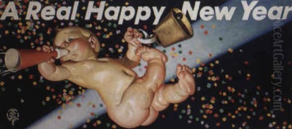 Joseph Christian Leyendecker's A Real Happy New Year is a vibrant celebration of joy and optimism, perfectly encapsulating the artist's signature style and the exuberant spirit of early-20th-century American illustration. Created in 1912, this iconic cover for The Saturday Evening Post features a cherubic boy in a festive outfit, gleefully blowing a horn amid a shower of confetti. Leyendecker’s mastery of bold, streamlined forms and dynamic composition is on full display, blending Art Deco influences with his distinct, polished realism. As one of the most prolific illustrators of his time, Leyendecker shaped the visual culture of the Golden Age of American Illustration, and this work remains a beloved symbol of New Year cheer, radiating timeless charm and energy.