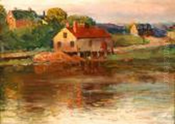 Joseph Eliot Enneking’s Afternoon Sun, Millpond, Brookline, MA is a serene yet luminous depiction of New England’s tranquil landscape, capturing the soft interplay of light and water under the golden hues of dusk. Painted in the late 19th century, Enneking, an American Impressionist, masterfully blends loose brushwork with a delicate tonal palette, evoking a sense of quietude and warmth. This work exemplifies the Tonalist influence within American Impressionism, emphasizing atmospheric harmony over detailed realism. Its historical significance lies in bridging European Impressionist techniques with distinctly American subjects, reflecting the era’s fascination with nature’s fleeting moments. The painting’s contemplative mood and subtle color gradations place it among Enneking’s finest contributions to the genre.