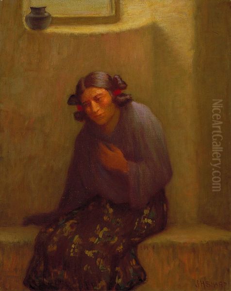 Joseph Henry Sharp's Twilight (Hopi Girl) (c. 1900–1915) is a captivating portrayal of quiet dignity, blending realism with subtle tonalist warmth. The painting depicts a young Hopi woman wrapped in a traditional blanket, her solemn gaze softened by the golden haze of twilight. Sharp, a founding member of the Taos Society of Artists, was renowned for his sensitive depictions of Indigenous cultures, and this work exemplifies his mastery of muted, harmonious palettes and emotive lighting. Created during his early trips to the Southwest, the piece reflects both ethnographic curiosity and artistic reverence, bridging 19th-century academic traditions and emerging American Impressionism. Today, it holds significance as a nuanced counterpoint to stereotypical representations of Native peoples, offering quiet intimacy over spectacle.