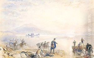 In Thirlmere, Oil on Canvas, Signed Lower Left (49cm x 75cm), J.M.W. Turner captures the wild romanticism of England’s Lake District with breathtaking mastery. The painting likely dates to Turner’s early 19th-century explorations of northern landscapes, where he transformed topographical accuracy into emotional atmospheres. Swirling skies and shimmering waters dissolve into luminous abstraction, a hallmark of Turner’s pioneering style that presaged Impressionism. The composition balances Thirlmere’s geological solidity with ethereal weather effects—perhaps storm clouds parting over the lake—rendered in molten golds and slate grays. As a key figure bridging Romanticism and modernism, Turner’s works like this exemplify his revolutionary handling of light, earning him acclaim as "the painter of air." Smaller in scale than his exhibition pieces, this signed work retains the epic grandeur of his seminal landscapes, offering collectors an intimate yet profound encounter with British art history.