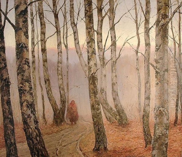 In the soft, melancholy glow of O Zmierzchu (At Dusk), Józef Rapacki masterfully captures the ephemeral beauty of twilight. Painted in the early 20th century, this Polish landscape exemplifies Rapacki's signature style of lyrical realism, blending delicate brushwork with a poetic sensitivity to light and atmosphere. The scene, likely inspired by the rural outskirts of Warsaw, depicts a tranquil, dusky horizon where fading sunlight dissolves into muted blues and dusky purples, evoking a sense of quiet introspection. Rapacki, a prominent figure of the Young Poland movement, bridged traditional realism with emerging modernist tendencies, making O Zmierzchu a poignant example of early 20th-century Central European landscape painting. Its historical significance lies in its ability to evoke national nostalgia during a period of cultural revival, while its subdued palette and emotive composition align with the Symbolist undercurrents of the era.