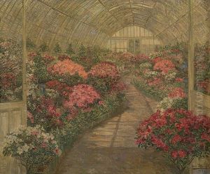 Juan Pablo Salinas y Teruel's Nu Feminino embodies the romantic allure of Academicism with a subtle Orientalist touch, capturing a reclining female figure draped in diaphanous fabrics against an opulent backdrop. The painting's soft chiaroscuro and meticulous detailing showcase Salinas' mastery of 19th-century European salon techniques, where warm amber tones contrast with cool silks to create sensual tension. As a Spanish artist working in Rome during the Belle Époque, Salinas bridged historical revivalism and emerging modernism—his nudes were neither as rigid as Bouguereau's nor as provocative as Klimt's, occupying a unique space in fin-de-siècle art. This particular work exemplifies his signature theatrical staging, where textile patterns and architectural fragments hint at Moorish influences, reflecting the era's fascination with exoticism while maintaining classical composition principles.