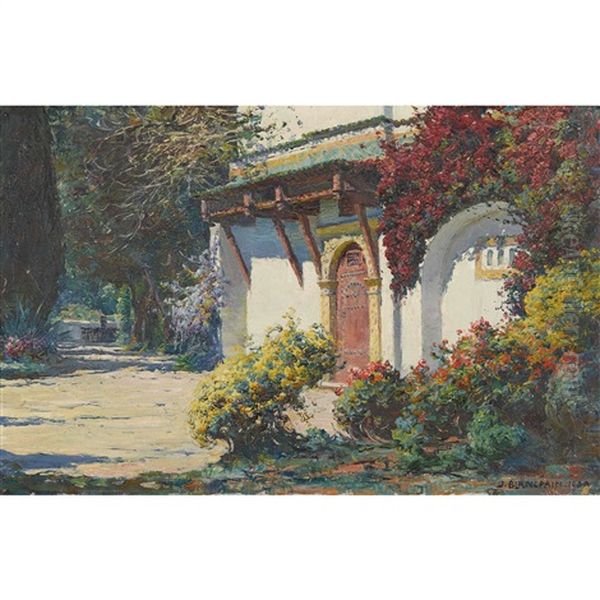 Jules Blancpain's Sonnige Hauspartie radiates warmth and joie de vivre, characteristic of late 19th-century European plein-air painting. The work likely depicts a sun-drenched gathering—figures leisurely engaged in conversation or repose, bathed in dappled light that filters through foliage, showcasing Blancpain's adept handling of natural light and intimate social tableaus. A Swiss artist active during the Belle Époque, Blancpain's style bridges Impressionist light studies and the genteel domesticity favored by Academic painters. Though less renowned than his Impressionist contemporaries, his works like Sonnige Hauspartie exemplify the era's transition from formal studio compositions to freer, light-infused scenes of bourgeois leisure. Today, such paintings offer a nostalgic lens into Europe's pastoral idylls before modernity's acceleration, situating Blancpain as a subtle chronicler of everyday lyricism.