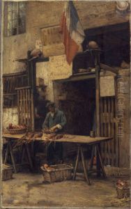 Jules Richomme’s The Hurdy-Gurdy Girl captures a tender yet melancholic moment in 19th-century Parisian street life. The painting, executed in Richomme’s signature academic style, showcases a young girl playing a hurdy-gurdy, her expression tinged with quiet resilience amidst the hardships of urban poverty. The soft play of light and shadow, typical of Realist and Romantic influences, heightens the emotional depth of the scene, while meticulous attention to texture—the fabric of her dress, the wooden instrument—reveals Richomme’s technical mastery. Created in 1871, the work reflects the post-revolutionary realism that sought to document everyday struggles with dignity. Though not as widely celebrated as works by Courbet or Millet, The Hurdy-Gurdy Girl remains a poignant example of social narrative art, bridging Romantic sentimentality and the emerging realist movement’s unflinching gaze.