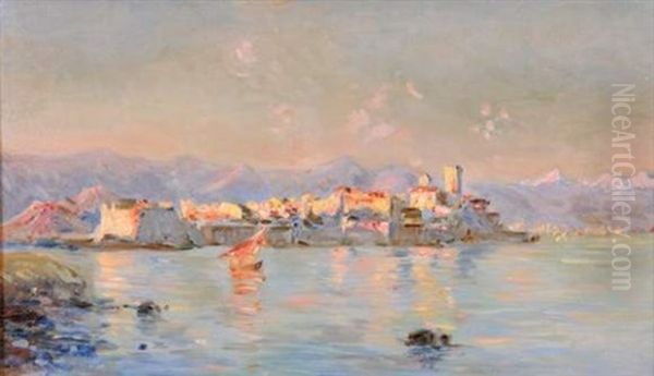 Vue Du Vieil Antibes by Julien Gustave Gagliardini (1846–1927) transports viewers to the sun-drenched charm of Provence through its luminous Mediterranean palette and serene composition. This late 19th-century oil painting captures Antibes’ historic quarter with soft, atmospheric brushwork—characteristic of Gagliardini’s academic training and his alignment with the Provençal plein-air tradition. Bathed in golden light, the scene harmonizes dusty peach rooftops, azure skies, and cypress trees, evoking timeless nostalgia for Southern France. Though less renowned than Impressionists like Monet, Gagliardini’s work exemplifies a bridge between academic precision and the looser, light-centric styles emerging in his era. Today, his Antibes series remains prized for its documentary and aesthetic value, offering a window into the region’s unspoiled beauty before modernization.