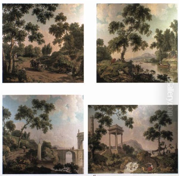 Jurriaan Andriessen’s Italianate Landscapes transports viewers to a romanticized vision of 18th-century Italy, bathed in golden light and imbued with serene grandeur. The painting exemplifies Dutch Italianate landscapes—a genre where Northern European artists, enthralled by Italy's luminous beauty, blended realistic detail with Arcadian idealism. Andriessen, a master of this tradition, composed idyllic scenes with rolling hills, classical ruins, and harmoniously arranged figures, reflecting the era’s fascination with the picturesque and sublime. His work captures the essence of the Grand Tour era, serving as a bridge between Dutch realism and emerging Romanticism. Though less celebrated than contemporaries like Claude Lorraine, Andriessen’s contributions were vital in popularizing Italianate themes in Northern Europe, making his paintings valuable windows into 18th-century aesthetic values and cross-cultural artistic exchange.