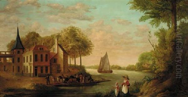 Peasants And Horses Disembarking From A Ferry Near The Star Inn