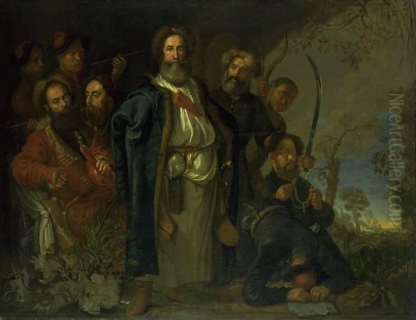 Karel van Mander III’s Et tatarisk gesandtskab pa besog i Kobenhavn (A Tatar Embassy Visiting Copenhagen) is a captivating 17th-century Dutch painting that masterfully blends historical narrative with rich artistic detail. Depicting a diplomatic encounter between a Tatar envoy and Danish dignitaries, the work immerses viewers in a lively scene of cross-cultural exchange, rendered with van Mander’s characteristic precision and vibrant color palette. The composition brims with movement—figures clad in exotic robes converse amidst architectural splendor, while light dances across textures of silk, stone, and metal. As part of the Dutch Golden Age tradition, the painting exemplifies the period’s fascination with diplomacy, trade, and the exotic "Other," reflecting Europe’s expanding global horizons. Van Mander’s work holds a unique place in art history as a bridge between Northern Renaissance realism and the emerging Baroque dynamism, offering both documentary value and aesthetic brilliance.