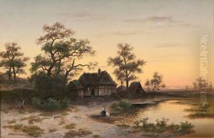 The painting "Heidemoor Lüneburg" by Karl Heffner (1849–1927) captures the serene yet melancholic beauty of the Lüneburg Heath moorland in Northern Germany. Executed with meticulous realism characteristic of late 19th-century German landscape painting, Heffner’s work bathes the scene in soft, atmospheric light, with delicate brushwork rendering the interplay of misty skies, vast heather fields, and reflective pools. Evoking a sense of timeless solitude, the composition invites viewers into a tranquil, almost poetic natural retreat. As a prime example of Heimatkunst ("homeland art"), Heffner’s oeuvre celebrated regional landscapes amidst Germany’s rapid industrialization, bridging Romanticism’s emotional depth with objective detail. Though less internationally renowned than contemporaries like Caspar David Friedrich, Heffner’s works, including this piece, contributed to preserving cultural identity through art, making them valuable artifacts of the period’s socio-artistic currents. Today, "Heidemoor Lüneburg" stands as both an ecological record and an artistic meditation on nature’s quiet grandeur.