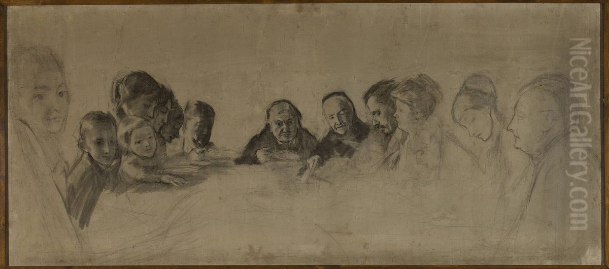 "Evening Siesta" by Konrad Krzyżanowski (1872–1922) exemplifies the artist’s mastery of mood and light, encapsulating the quietude of twilight through richly textured brushstrokes. This early 20th-century work embodies Krzyżanowski’s post-impressionist leanings, blending emotive color harmonies with an almost Symbolist introspection. Depicting a figure in repose against a dusky interior, the painting radiates warmth through amber-toned shadows and diffused lamplight, evoking contemplative solitude. As a Polish artist trained in Munich and influenced by European modernism, Krzyżanowski bridged academic traditions and emerging avant-garde movements. Though less globally recognized than his contemporaries, his works like Evening Siesta hold significance in Central European art history for their psychological depth and transitional stylistic synthesis—predating later Expressionist explorations of interior states through chromatic intensity.