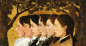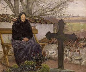 Fru Sigrid Ring siddende paa et Stenbalustre.