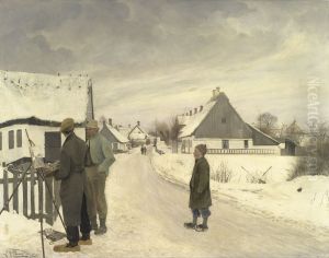 "Vinterdag med stille tovejr. Husene spejler sig i gadekaeret". Baldersbronde