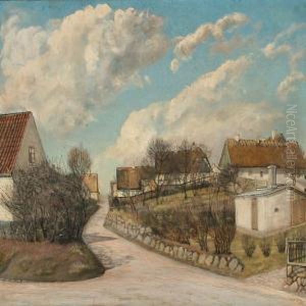 Laurits Andersen Ring's Summer Day in a Danish Village with Thatched Houses (1899) is a masterpiece of Danish Symbolism, radiating quiet rural charm. The painting depicts a sun-dappled village lane flanked by traditional thatched cottages, where warm golden light filters through lush trees, casting delicate shadows. Ring, a pioneer of social realism infused with psychological depth, elevates this humble scene into a poetic meditation on simplicity and national identity. The precise brushwork and muted yet luminous palette reflect his academic training, while the contemplative mood aligns with the Symbolist movement. This work holds significance as a quintessential example of late 19th-century Danish art, bridging intimate regionalism with universal emotional resonance—its pastoral serenity contrasting with Ring’s often darker explorations of mortality.