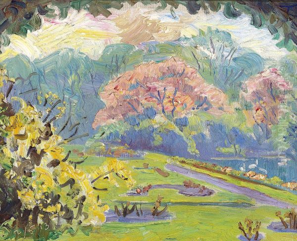Laurits Tuxen’s Fra min Have ved Rosenborg i Kobenhavn (From My Garden at Rosenborg in Copenhagen) is a captivating Impressionist masterpiece that radiates serenity and natural beauty. Painted in 1884, the work captures the lush, sun-dappled garden of Tuxen’s summer residence near Rosenborg Castle, showcasing his mastery of light and color. Tuxen, a Danish painter associated with the Skagen group, blends loose, expressive brushwork with meticulous attention to detail, evoking a dreamy, almost idyllic atmosphere. The scene is alive with vibrant greens, soft floral hues, and dappled sunlight, illustrating his ability to translate fleeting moments into timeless art. Historically significant, this work reflects the broader European Impressionist movement while retaining a distinctly Nordic sensibility, embodying Tuxen’s role as a bridge between Danish realism and French-influenced modernism.