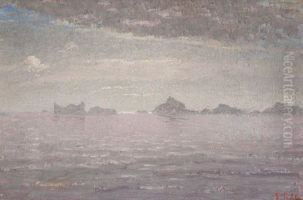 Laurits Tuxen's The Mouth of the Fiord at Jakobshavn, Greenland is a masterful portrayal of Arctic grandeur, capturing the sublime interplay of ice, water, and light in Greenland's dramatic landscape. Painted in the late 19th or early 20th century, Tuxen—a Danish artist associated with the Skagen Painters—brings a naturalistic yet romanticized vision to the scene, emphasizing the vastness and serenity of the Arctic wilderness. His artistic style merges meticulous realism with atmospheric sensitivity, reflecting the broader European trend of landscape painting during his era. Historically, this work stands as both a geographical document and an artistic achievement, bridging scientific interest in polar regions with fine art traditions. Its cool tones and balanced composition evoke awe for nature's untouched beauty while showcasing Tuxen's skill in capturing transient light effects—a hallmark of late Nordic Romanticism.