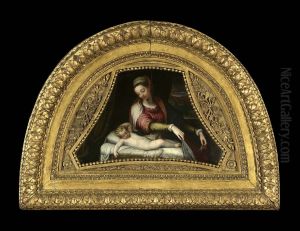A Portrait Of Costanza Alidosi Seated And Holding A Small Dog, A Still Life Of A Vase Of Flowers And Jewelry On A Table Beside Her