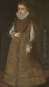 Lavinia Fontana’s Portrait of a Girl, Bust-length, in a Pink and White Embroidered Dress, Wearing a Coral Necklace exudes delicate charm and Renaissance refinement. Painted circa 1580–90, this intimate portrait captures a young girl adorned in an exquisitely detailed dress, its intricate embroidery highlighting Fontana’s mastery of texture and light. The coral necklace, a symbol of protection and prosperity in 16th-century Italy, adds a touch of symbolism and warmth to the composition. As one of the few successful female artists of her time, Fontana broke barriers in a male-dominated field, specializing in portraiture and altarpieces for aristocratic patrons. This work exemplifies her signature style—elegant, precise, and infused with lifelike expressiveness. Its historical significance lies not only in its artistic merit but also in its role as a testament to Fontana’s pioneering career, making it a valuable piece in the study of Renaissance and women’s art history.