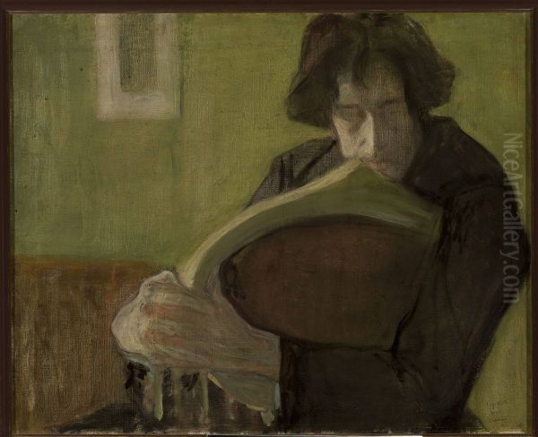 The painting Man sitting in a chair. Portrait of Mieczyslaw Jakimowicz by Leopold Gottlieb exudes a quiet yet introspective energy, capturing the essence of early 20th-century Expressionism. Created in 1914, this portrait reflects Gottlieb’s mastery in blending psychological depth with bold, loose brushstrokes—a hallmark of his style influenced by both Polish and Parisian avant-garde circles. The subject, Mieczyslaw Jakimowicz (a fellow artist and friend), is rendered with a contemplative gaze, his posture relaxed yet dignified. The muted earthy tones and dynamic contrasts of light and shadow create an intimate, almost melancholic atmosphere. As a key figure of the École de Paris, Gottlieb’s work bridges Eastern European sensibilities with modernist innovations, making this painting a significant piece in the study of early Expressionism and Polish-Jewish artistic heritage.