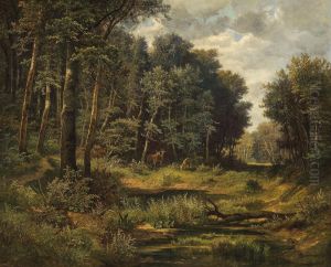 Enten An Einem Baumbestandenen Bachufer, Rechts Eine Magd In Blauem Rock Und Rotem Kopftuch