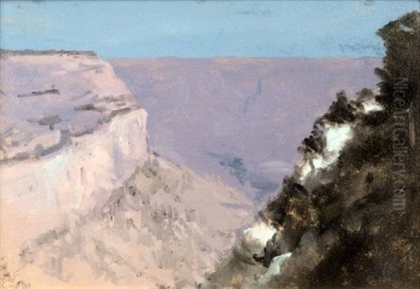 Lockwood de Forest’s Grand Canyon transports viewers into the awe-inspiring grandeur of one of America’s most iconic landscapes. Painted in the late 19th or early 20th century, the work exemplifies de Forest’s mastery in blending realism with a subtle touch of tonalism, capturing the canyon’s vastness through soft, atmospheric hues and meticulous attention to geological details. As a key figure in the American Arts and Crafts Movement, de Forest was celebrated for his cross-disciplinary talents—spanning painting, furniture design, and interior decoration—and his ability to evoke emotional depth through nature. Grand Canyon stands as a testament to his artistic vision, bridging the gap between meticulous representation and poetic interpretation. Its place in art history is marked by its reflection of the era’s fascination with the American West, while infusing Eastern influences (from his collaborations with Indian artisans) into its textural richness.