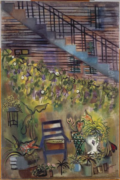 Loren MacIver’s Carey’s Backyard (1961) is a delicate, dreamlike exploration of everyday beauty transformed by poetic vision. Rendered in a muted palette of soft greens, blues, and earthy tones, the painting depicts an intimate urban garden with a lyrical, almost abstract quality. MacIver’s loose, fluid brushwork blurs the boundaries between reality and memory, evoking a sense of quiet nostalgia. A key figure of mid-century American modernism, MacIver was celebrated for her ability to elevate mundane scenes into meditative, luminous compositions. Though less widely recognized than her male peers, her work—exhibited at MoMA and the Whitney—represents a bridge between figurative tradition and abstraction, offering a uniquely feminine perspective on postwar art. Carey’s Backyard epitomizes her gift for capturing fleeting moments with profound simplicity.