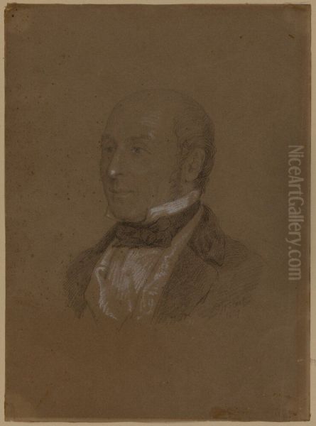 The painting Domstolspresident John Hardwick, London. Paris by Lorenz Frølich is a captivating 19th-century work that balances portraiture and narrative elegance. Frølich, a Danish artist known for his delicate draftsmanship and romantic realism, depicts the domstolspresident (chief judge) John Hardwick with refined precision, set against an evocative background blending London and Paris—an ode to cosmopolitan sophistication. The muted yet warm color palette, with soft browns and creams, lends the composition a dignified warmth, while Frølich’s meticulous attention to textile details—Hardwick’s formal attire, the draped furnishings—hints at Academic artistry. Historically, the piece reflects the 1800s’ intersection of legal prestige and European cultural exchange, positioning it as both a societal record and a stylistic bridge between neoclassical severity and burgeoning romanticism. Though Frølich remains lesser-known than peers like Ingres, his work here exemplifies portraiture as a tool of identity and legacy.
