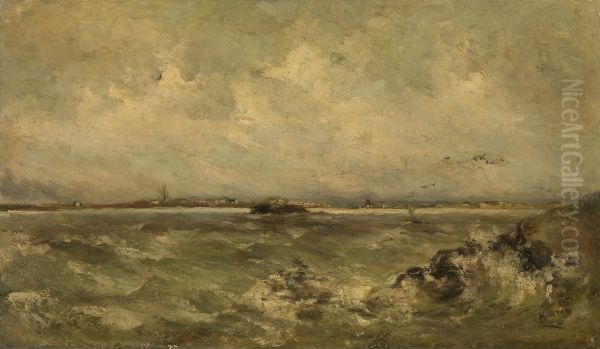 Louis Artan’s Seascape captures the raw, untamed beauty of the ocean through evocative brushstrokes and a masterful balance of light and shadow. Born in 1837, Artan was a Belgian marine painter associated with the Realism movement, though his work occasionally flirted with Impressionist techniques. This seascape reflects his deep fascination with coastal vistas, portraying waves crashing against rocky shores under a brooding or luminous sky—depending on the specific piece—infusing the scene with drama and movement. Artan’s ability to render the sea’s ever-changing moods secured his reputation as one of the 19th century’s foremost marine artists, bridging Romantic emotionality and Realist precision. His works remain significant for their atmospheric depth and influence on later maritime painters.
