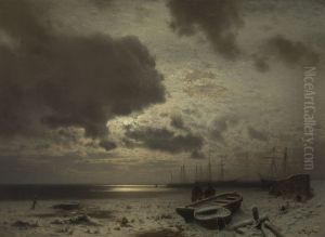 Mondbeschienene Uferlandschaft Mit Gehoft