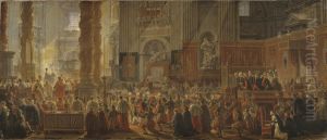 Bring the timeless beauty of Louis Jean Desprez's Gustav III bevistar julmassan i Peterskyrkan i Rom 1783 into your home with a handmade oil painting reproduction. Carefully recreated on canvas by skilled artists using traditional techniques, this piece captures the delicate brushwork, subtle light, and vibrant color of the original masterpiece. With museum-level quality and rich texture, it brings elegance and artistic depth to any space. Enjoy free shipping and make this masterpiece a part of your personal collection.