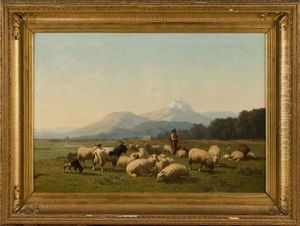 Vacher Et Son Troupeau Dans Un Paysage