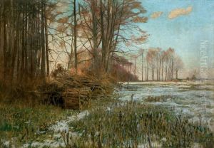 Louis Willem Van Soest’s Early Morning in Winter is a captivating Dutch realist painting from the late 19th or early 20th century, depicting a serene, snow-laden landscape at dawn. The work exudes tranquility, with soft, diffused light breaking through the winter haze, casting delicate shadows on the frost-covered fields. Van Soest’s meticulous attention to texture—whether the crisp snow, barren trees, or faintly glowing sky—creates a meditative stillness that draws the viewer into the quietude of rural winter. Though not as widely recognized as the Hague School masters, his work shares their subdued palette and devotion to naturalism, offering a poetic yet unembellished glimpse of Dutch countryside life. The painting’s historical value lies in its embodiment of Northern European realism, bridging the Romantic appreciation of nature with emerging modernist simplicity.