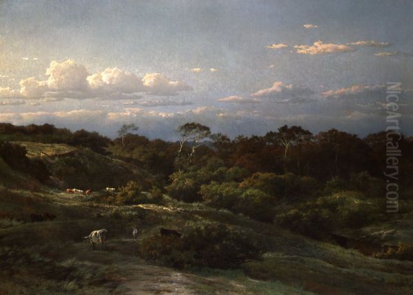 Louwrens Hanedoes’ De Haarlemse duinen captures the serene yet dynamic beauty of the Haarlem dunes with remarkable finesse. The painting exudes a tranquil, almost ethereal quality, drawing viewers into its soft, misty landscapes where delicate light filters through the undulating dunes. Hanedoes, a 19th-century Dutch painter, was deeply influenced by the Romantic movement, and this work reflects his mastery of atmospheric effects and meticulous attention to natural detail. The composition, with its harmonious interplay of earth tones and subtle sky hues, invites contemplation, evoking the quiet majesty of the Dutch coastline. Historically, Hanedoes’ works bridge the gap between Romanticism and the Hague School, showcasing a transitional phase in Dutch landscape painting. While not as widely recognized as his contemporaries like Jacob van Ruisdael, Hanedoes’ ability to convey mood and place ensures De Haarlemse duinen remains a noteworthy piece in the canon of 19th-century European art.